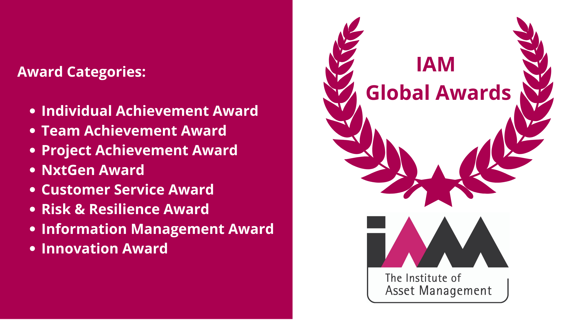 The Global Awards aim to recognise the outstanding contributions and achievements of asset management professions - commending those who have worked to improve aspects of an asset management system and generate benefits or enhanced value for wider society.