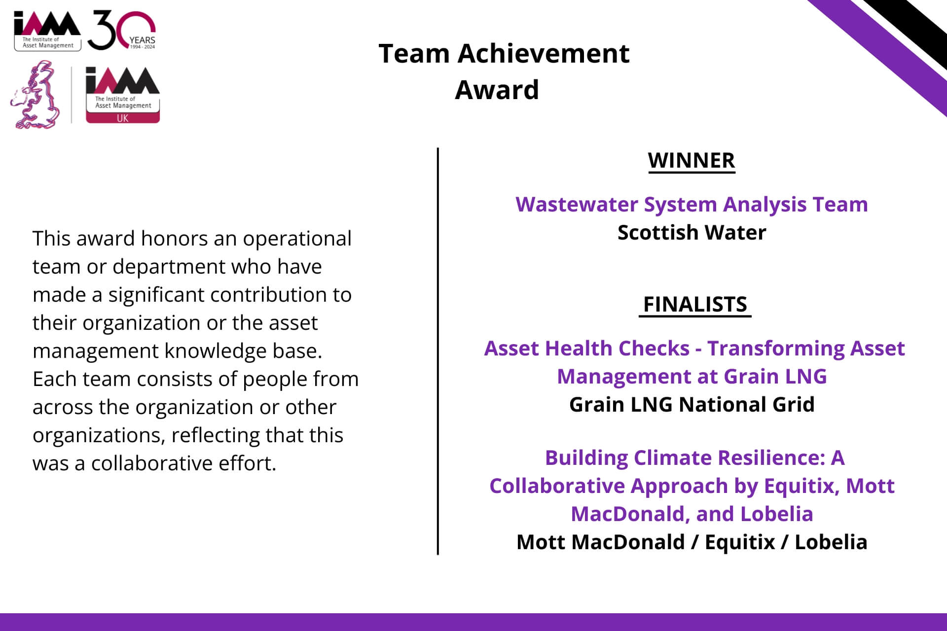 Wastewater System Analysis Team (Scottish Water) was the winner of the Team Achievement Award.
