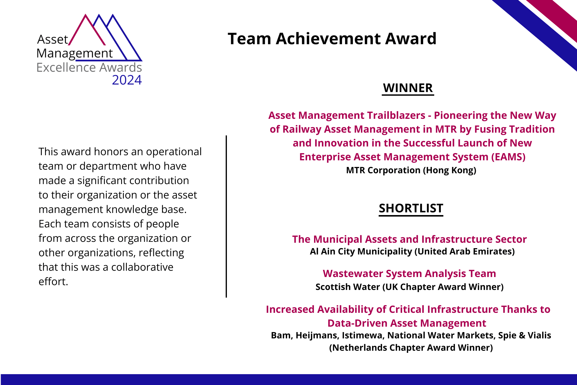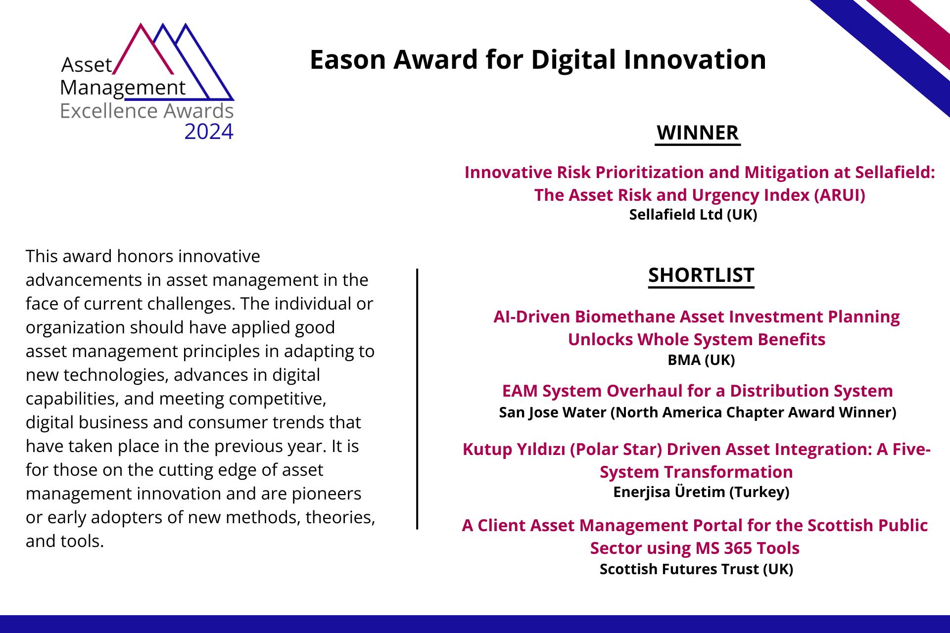 Many congratulations to the IAM Asset Management Excellence Awards 2024 winners and finalists.