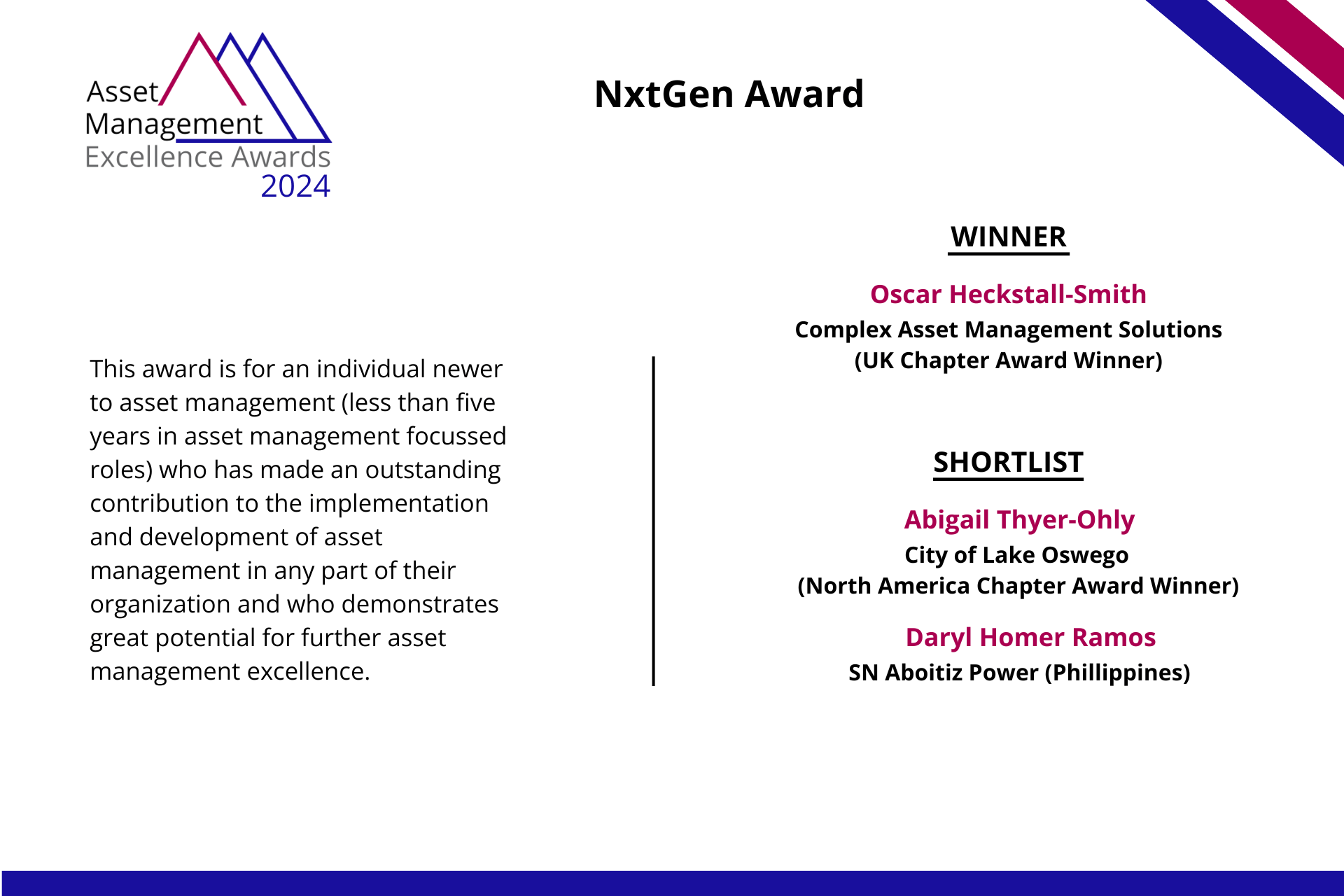 Oscar Heckstall-Smith - Complex Asset Management Solutions (UK Chapter Award Winner)