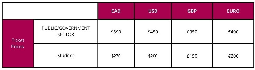 Substantial discounts are available for speakers, government and public sector attendees, and students.