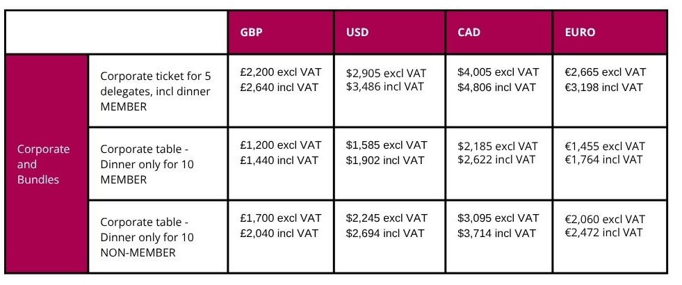 Don't miss out on the chance to network and celebrate the achievements of the IAM UK Chapter Awards 2025 that will launch soon, by booking a corporate table or why not take advantage of our bundle offer which will give five delegates access to the whole event including the dinner pricing below. If you would like to book either of the options below please email Events@theiam.org
