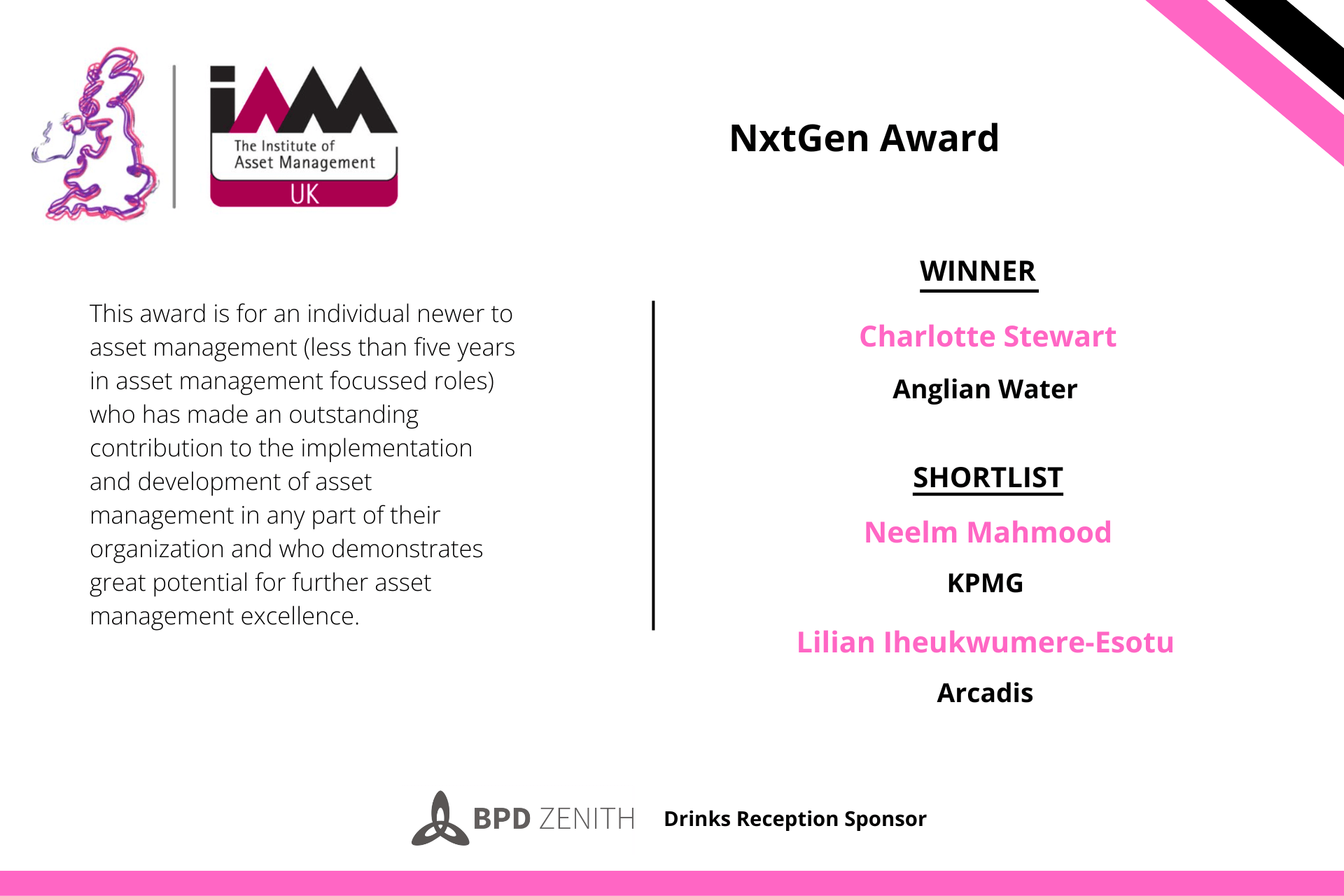 The winners collected their awards from IAM UK Chapter Chair, Stewart Whyte CEng AMP, and IAM CEO, Ursula Bryan.